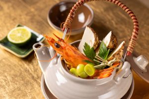 香り高い松茸と旨み豊かな車海老を合わせた「土瓶蒸し」や、「松茸ごはん」を、鉄板焼ならではの技法でその味わいを最大限に生かした一品に仕上げ、メインの神戸ビーフや鮑とともに贅を尽くした鉄板焼の魅力を満喫できます。